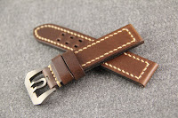 Bespoke watch strap of calf leather for U-BOAT U42 watch. The top strap is made of Buttero calf leather. Leather produced at the Conceria Walpier - Tuscany, Italy. Lining strap of calf leather. Strap hand stitched.