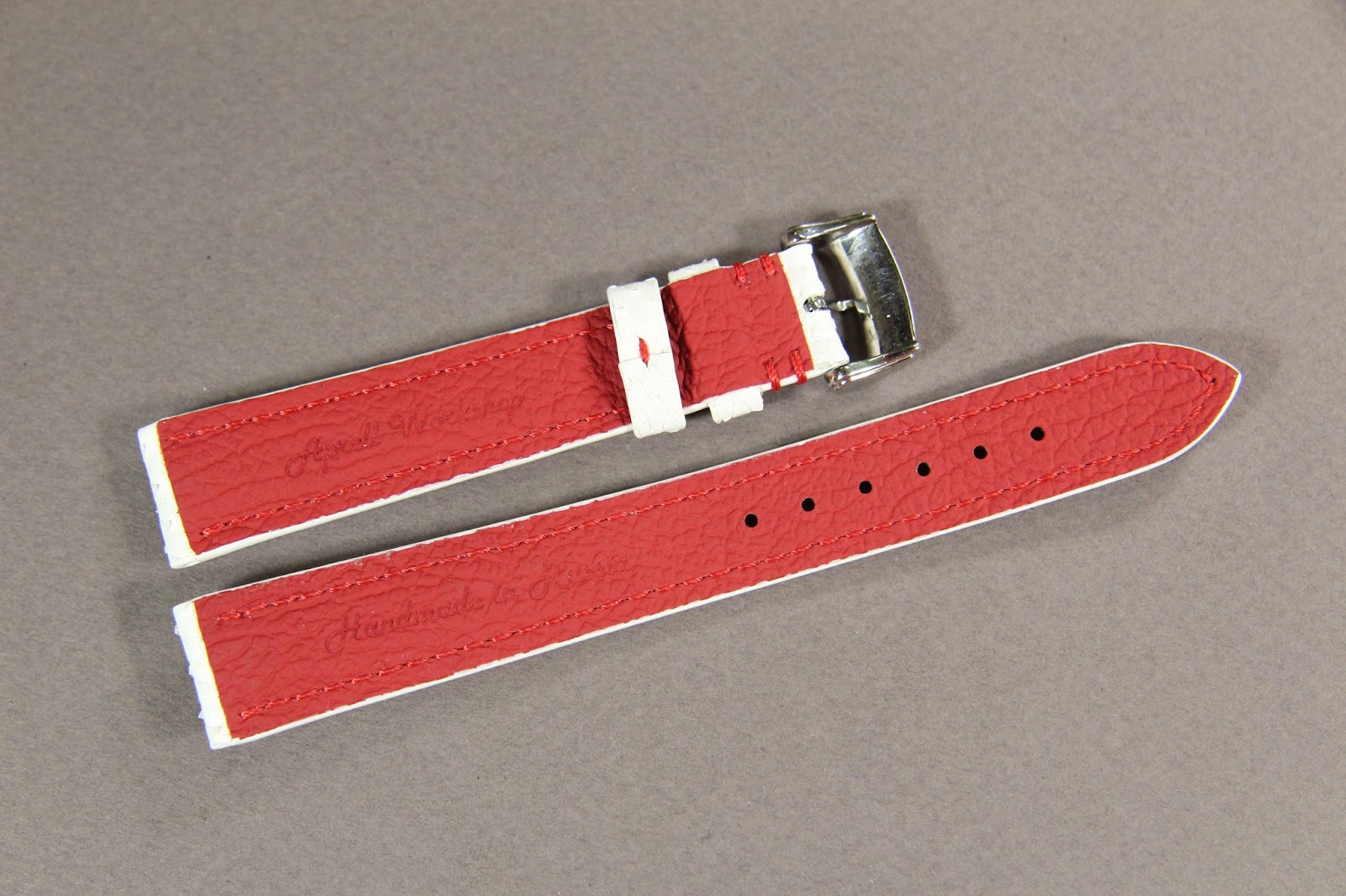 Custom-made watch strap of python leather for Zenith Star watch. The top strap is made of python leather. Lining strap of calfskin leather. Strap hand stitched.