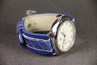 Custom-made watch strap of calfskin leather for Molnija marriage watch. The top strap is made of calfskin leather and alligator leather. Lining strap of calfskin leather. Strap hand stitched.