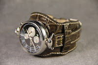 Custom-made bund watch strap of crocodile leather for Aviator watch. The top strap is made of crocodile leather. Lining strap of calfskin leather. Strap hand stitched.