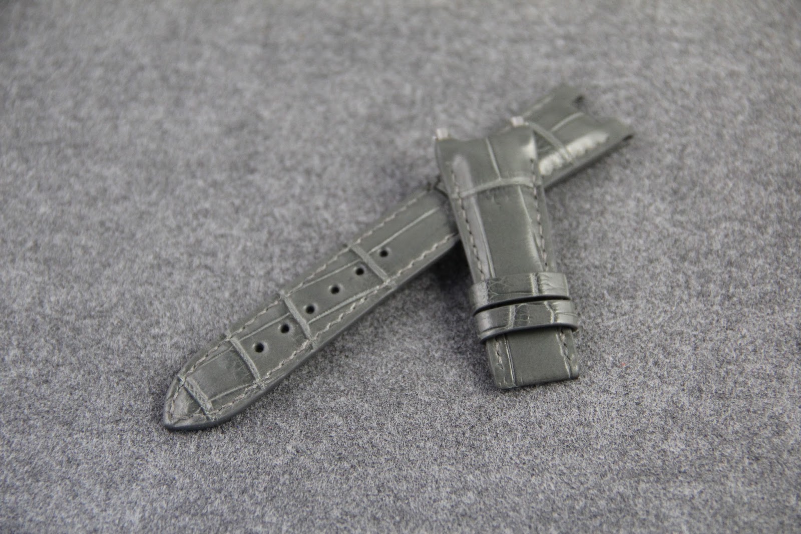 Сделанный на заказ ремень для часов Bovet из кожи аллигатора. Верх ремня сделан из кожи аллигатора. Подкладка ремня из кожи теленка. Ремень прошит вручную.