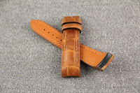 Bespoke watch strap of crocodile leather for Fortis Blue Horizon Chronograph watch. The top strap is made of crocodile leather. Lining strap of calf leather. Transfer of inserts into the base of strap. Strap hand stitched.Ремешок для часов Cartier Tank Solo из кожи ящерицы.