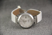 Custom-made watch strap of crocodile leather for Omega De Ville Ladymatic watch. The top strap is made of crocodile leather. Lining strap of calf leather.