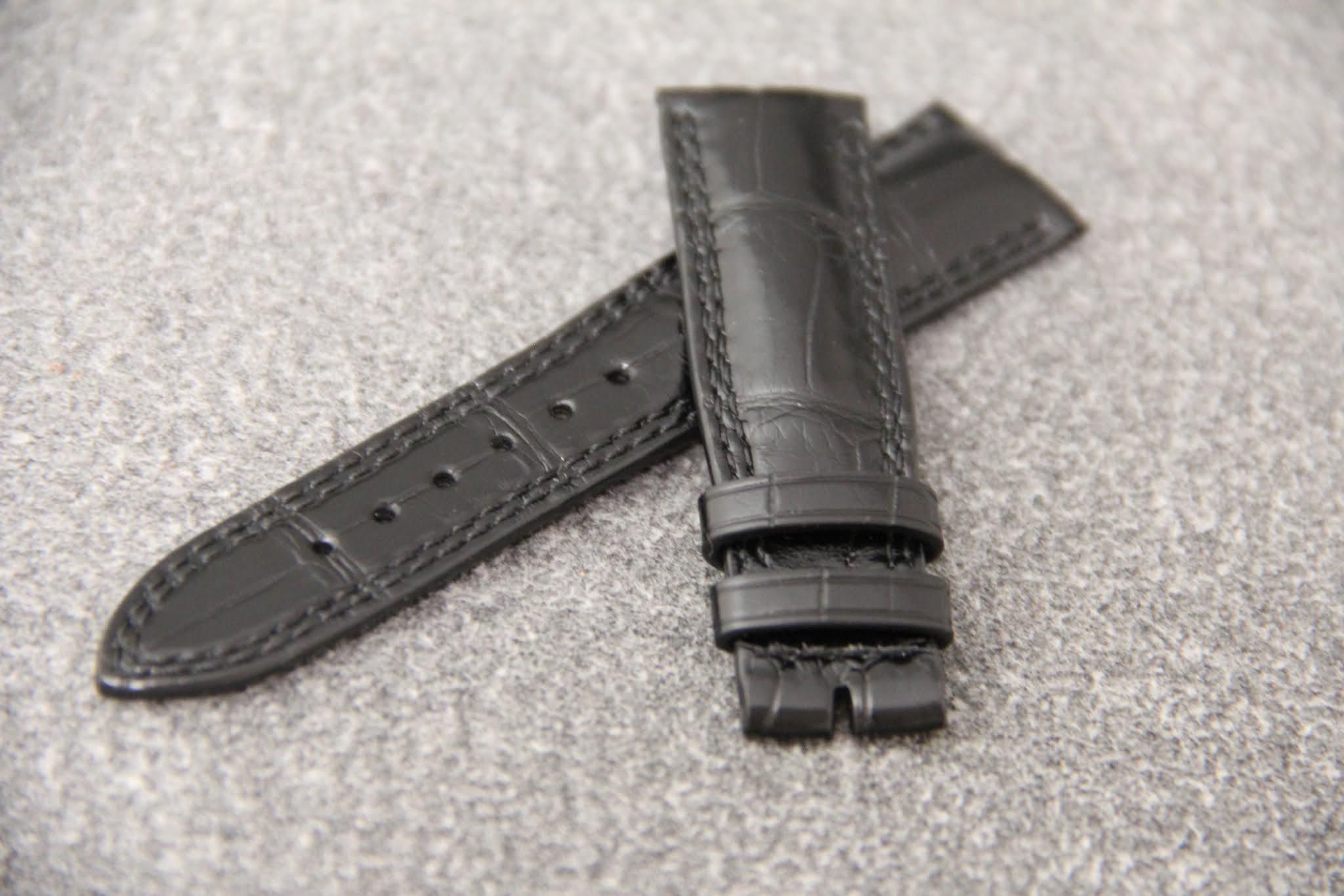 Ремешок для часов Jaeger-LeCoultre Master Compressor. Верх ремешка сделан из кожи крокодила. Подкладка ремешка из кожи теленка Zermatt. Кожа произведена на заводе Haas во Франции. Ремешок прошит вручную.