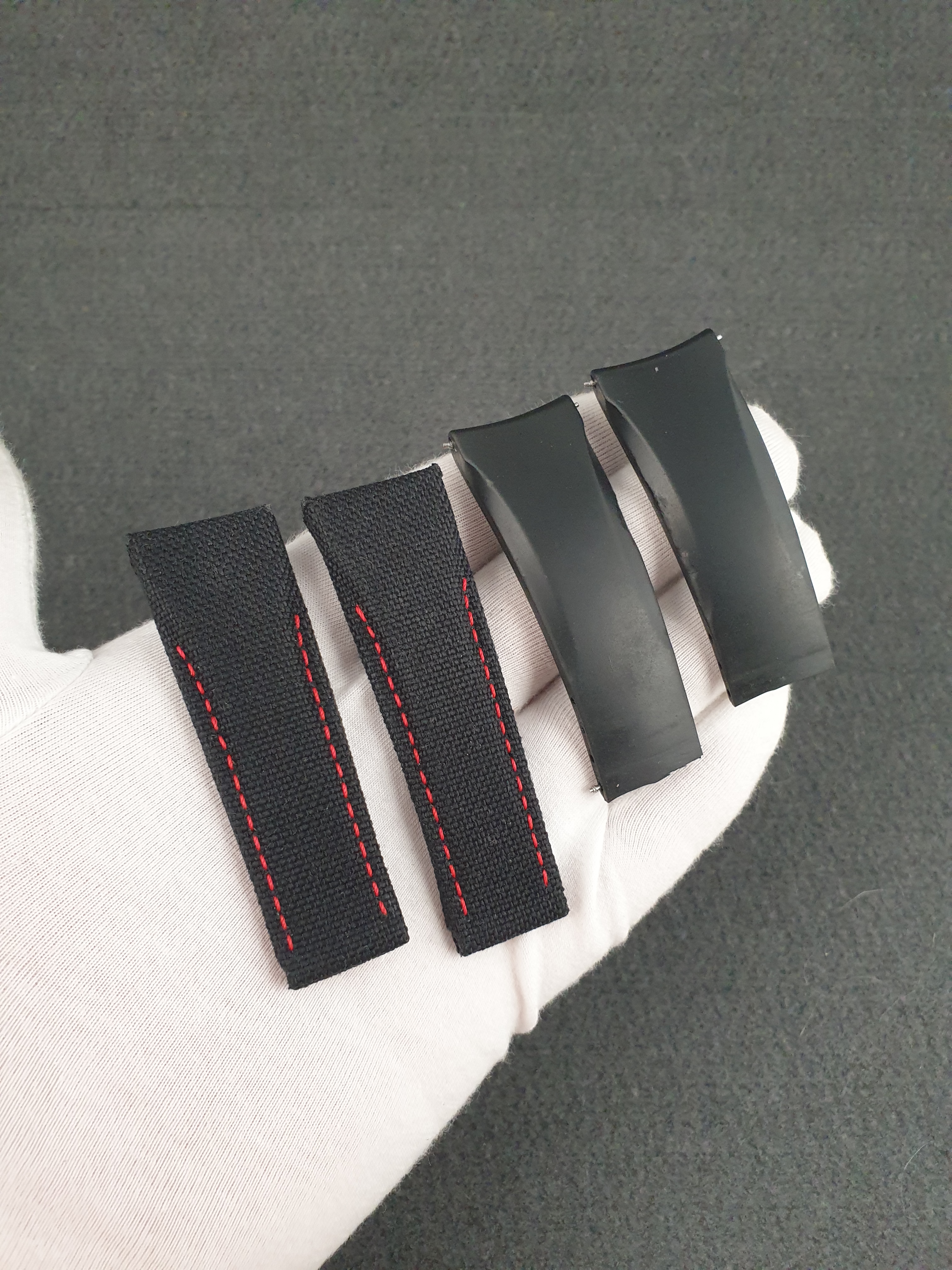Bespoke watch strap for Girard Perregaux Pour Ferrari watch. The top strap is made of cordura fabrics. Lining strap of calf leather. Strap hand stitched. Roll-up edge of the strap.